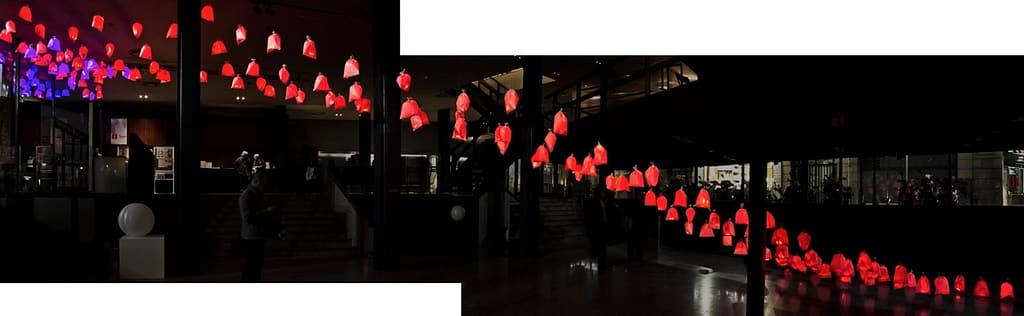 Coincidiendo con el día de San Valentín, que Desigual se encargó de recordarnos inundando las calles del Ciutat Vella con bonitos globos rojos en forma de corazón, el 14 de febrero salí a la calle con mi cámara de fotos para ser testigo de algunos de los eventos. A las 18:00h se daban cita en el Colegio de Arquitectos (frente a la catedral) arquitectos y diseñadores en la jornada «eLe» (espai, llum i eficiència) para debatir sobre el papel de la luz en la creación de espacios, y se encendía la instalación de luz «H-O-L-A», propuesta de Flash Light Collective.
