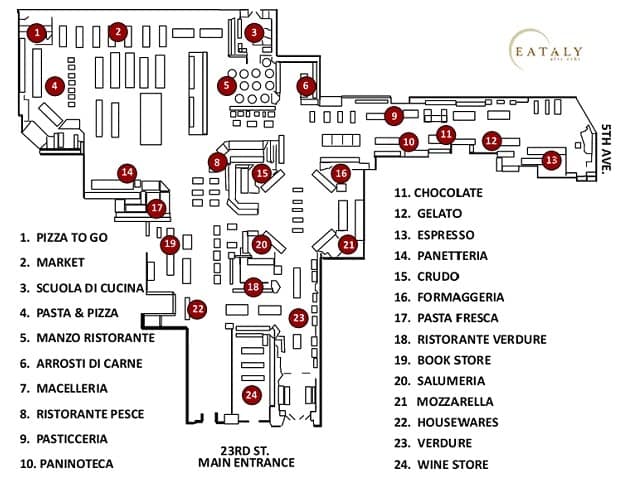 Hablando de comida, en la acera de enfrente (200 5th Ave) EATALY es una especie de pasaje o plaza cubierta que quiere evocar al mercado tradicional italiano, combinando eficazmente restaurantes y cafeterías gourmet con la venta de materias primas de primera calidad. Con una transparencia absoluta en la elaboración de sus productos, bajo la premisa EAT-LEARN-SHOP que hará las delicias de los consumidores más exigentes, se ofrece una experiencia sensorial que va mucho más allá de la compra o la alimentación.