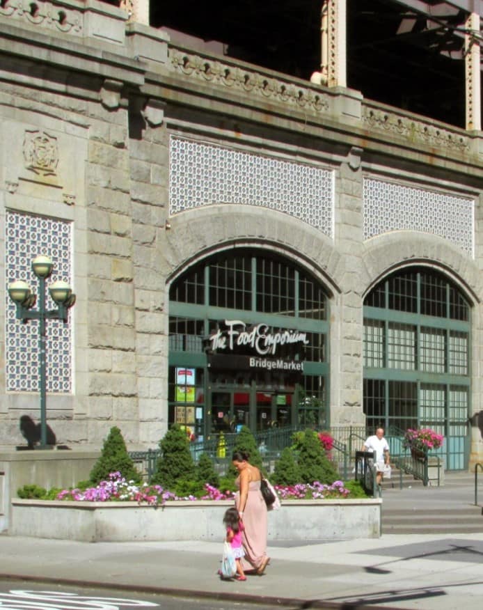 Pasando por los clásicos grandes almacenes BLOOMINGDALE’S, nos alejamos de las zonas comerciales más lujosas por la 59 y en el límite sudeste del distrito encontramos BRIDGEMARKET FOOD EMPORIUM (401 E 59th St), una pequeña joya escondida entre las bóvedas bajo el puente de Queensboro, obra del arquitecto valenciano Guastavino que en el siglo XIX exportó y difundió el sistema constructivo tradicional de ‘la volta catalana’ más allá del Atlántico.