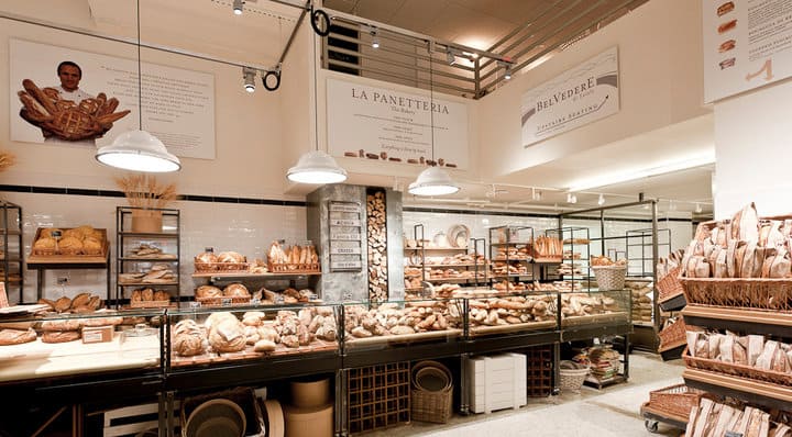 Organizado por sectores (la piazza, la calle de la pasta, los embutidos, vinos, quesos, panadería, etc.), el establecimiento basa su imagen en el show cooking desde un punto de vista cercano y didáctico, una presentación muy cuidada de sus productos y una elegante cartelería divulgativa que nos informa de los propiedades nutricionales y los procesos que hay tras todos los alimentos.